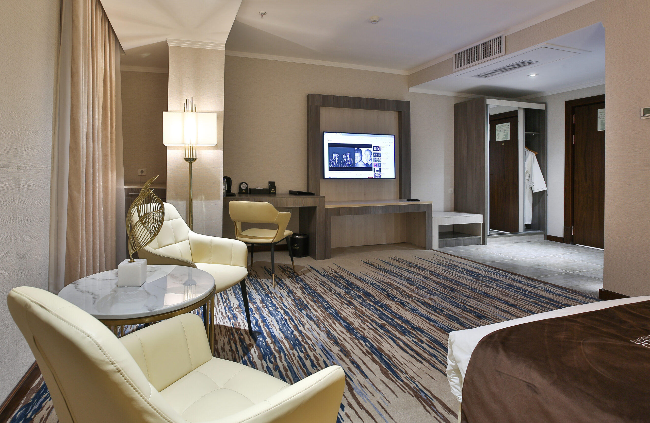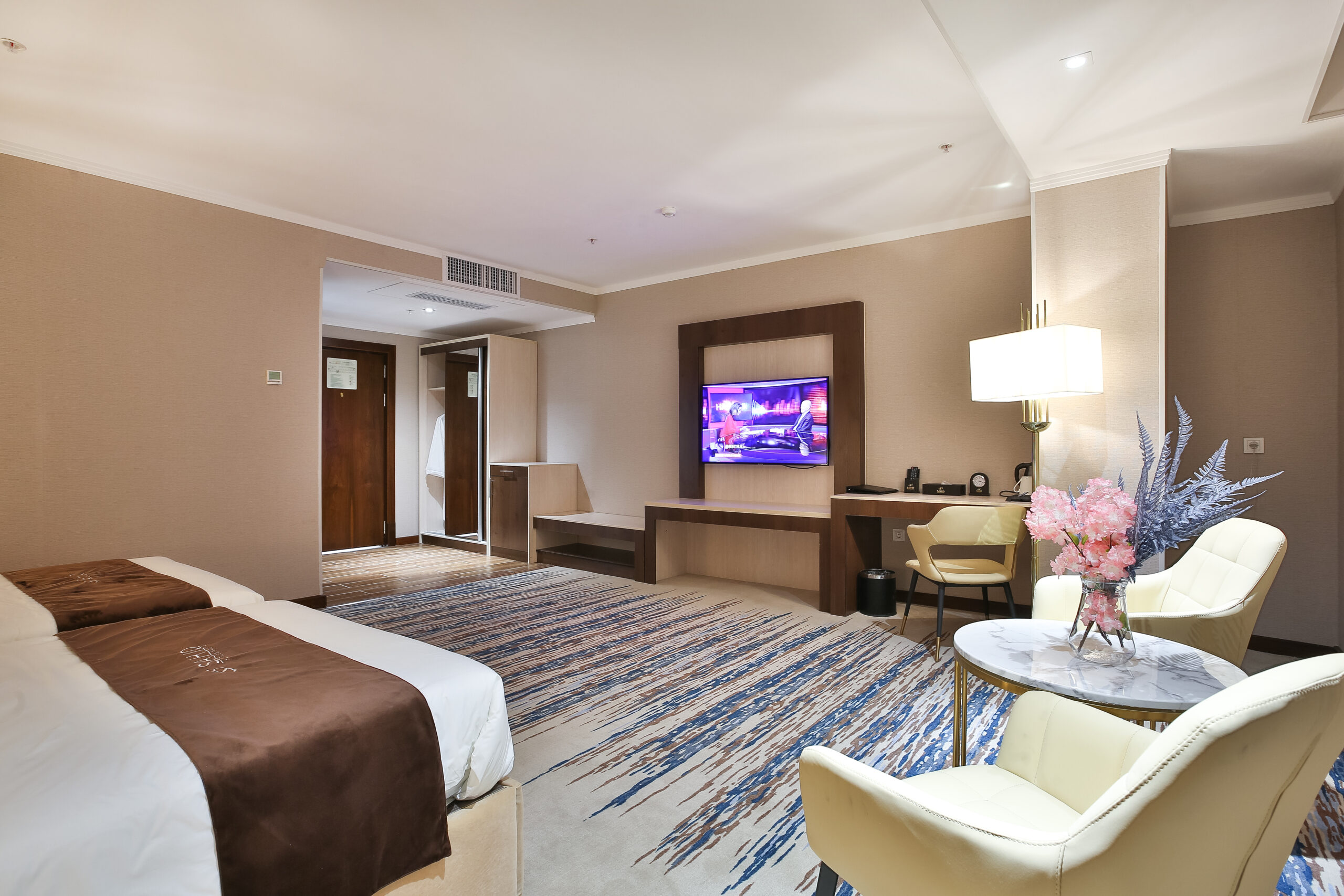 Sahid Zarafshon features a restaurant, fitness center, a bar and shared lounge in Bukhara. With free WiFi, this 4-star hotel has a garden and a terrace. The accommodations provides a 24-hour front desk, room service and currency exchange for guests.