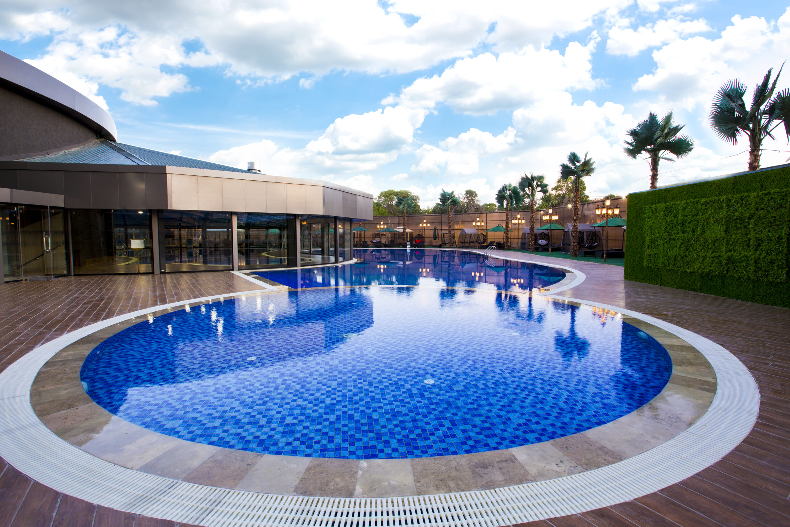 Outdoor and indoor 24-hour swimming pools. The indoor pool is open 24/7.